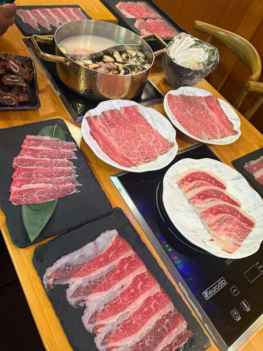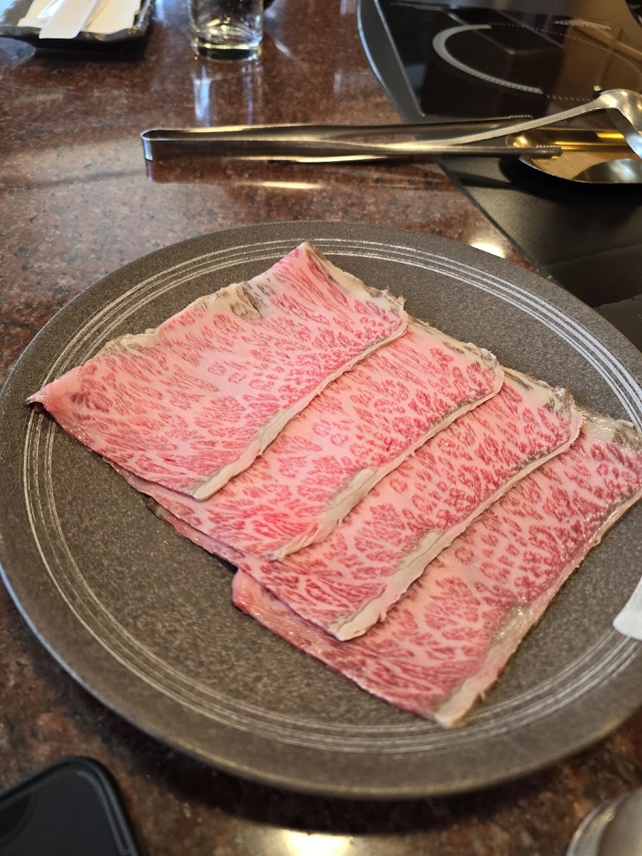 Fantastic staffs and fantastic foods. We went in during a quiet Monday for some early holidays gathering. The meats quality is top notch and the available sides and veggies are more than plenty and delicious. We recommend the sukiyaki and tonkotsu base if possible. Although I prefer my Wagyu in a grilled style, Shabu Shabu is an excellent cooking option too. We did received news the Shabu Shabu option might be ending soon so please go visit them ASAP!