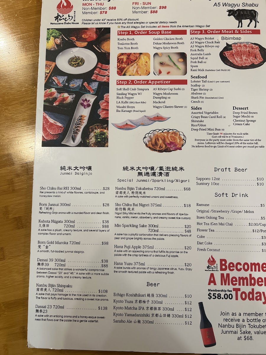 Matsuyama Shabu House Menu